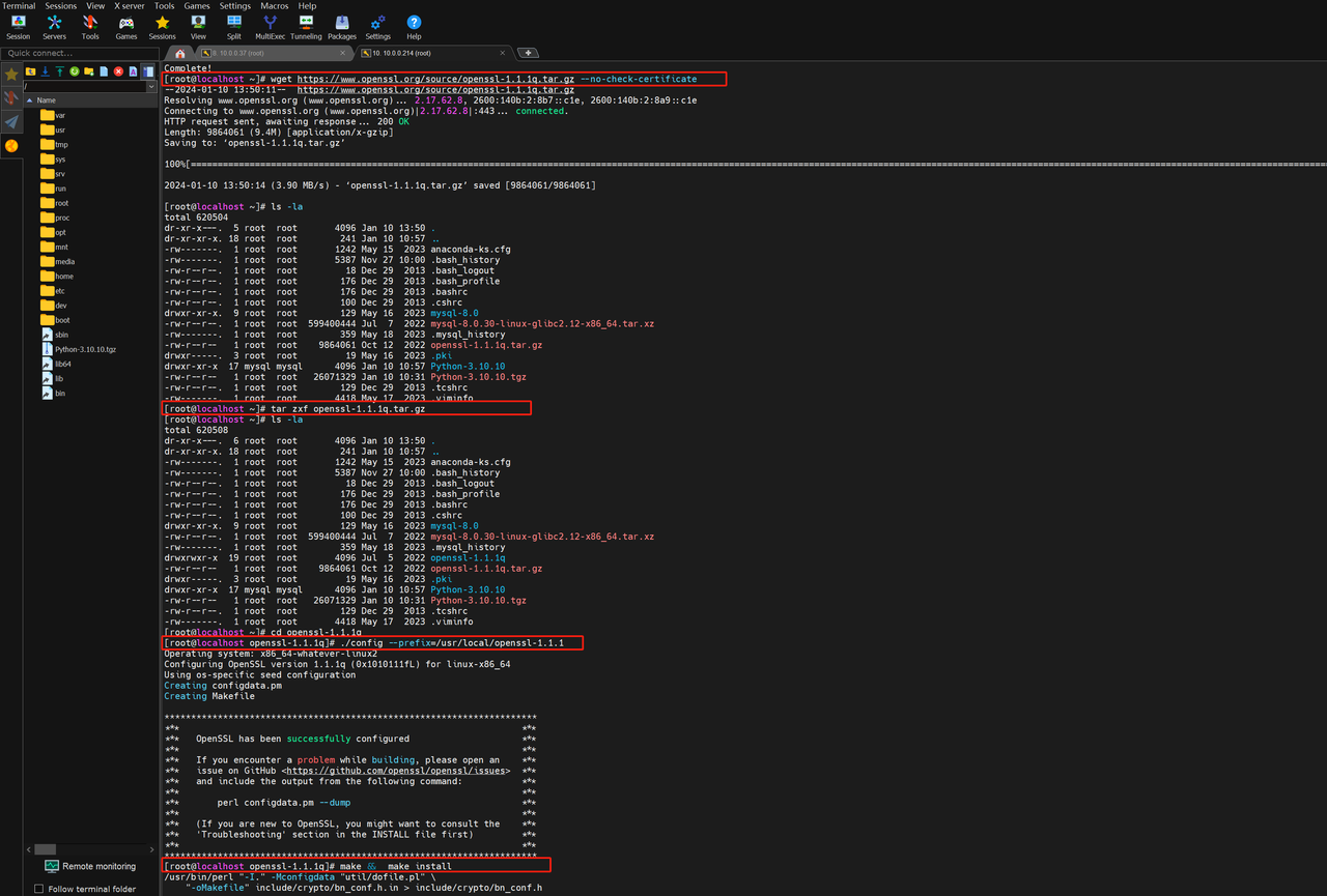 下载最新版本的源码包:[root@localhost ~]# wget https://www.openssl.org/source/openssl-1.1.1q.tar.gz –no-check-certificate