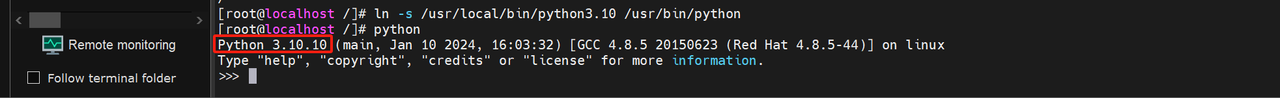 [root@localhost ~]# ln -s /usr/local/bin/python3.10 /usr/bin/python