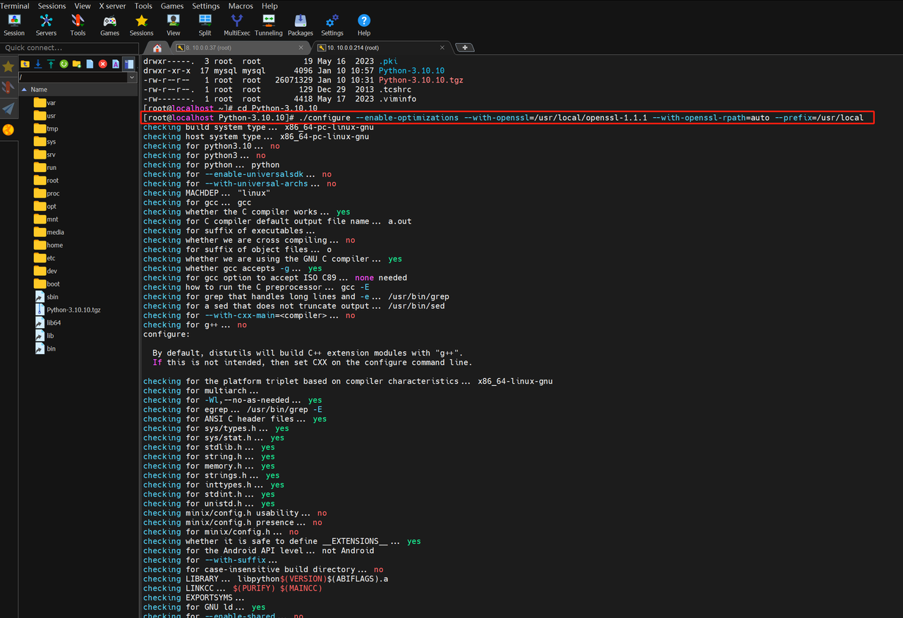 3 编译 使用 make 工具进行编译: [root@localhost ~]# ./configure –enable-optimizations –with-openssl=/usr/local/openssl-1.1.1 –with-openssl-rpath=auto