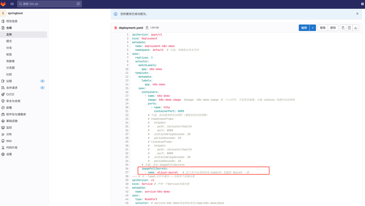 你需要在 Kubernetes 中创建一个 Secret,用于存储阿里云镜像仓库的登录凭证,并在 Deployment 中引用它。