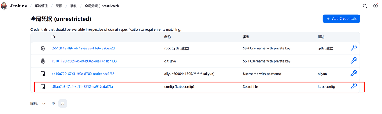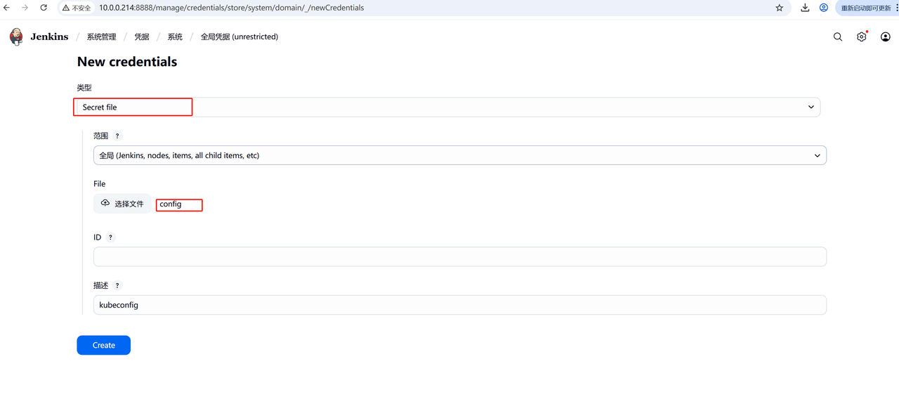 2:在 jenkins 中添加 kubeconfig 凭证,并查看修改 Jenkinsfile 使用 kubeconfig 凭据(本文中的Jenkinsfile是修改过的完整版)