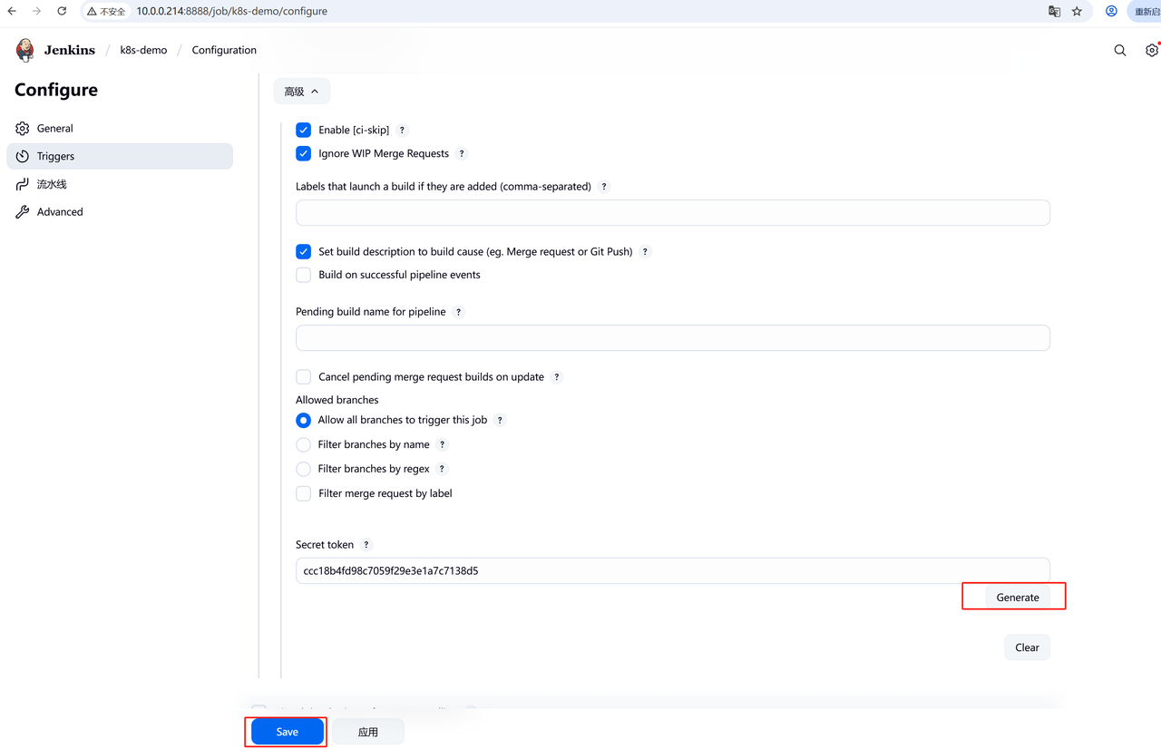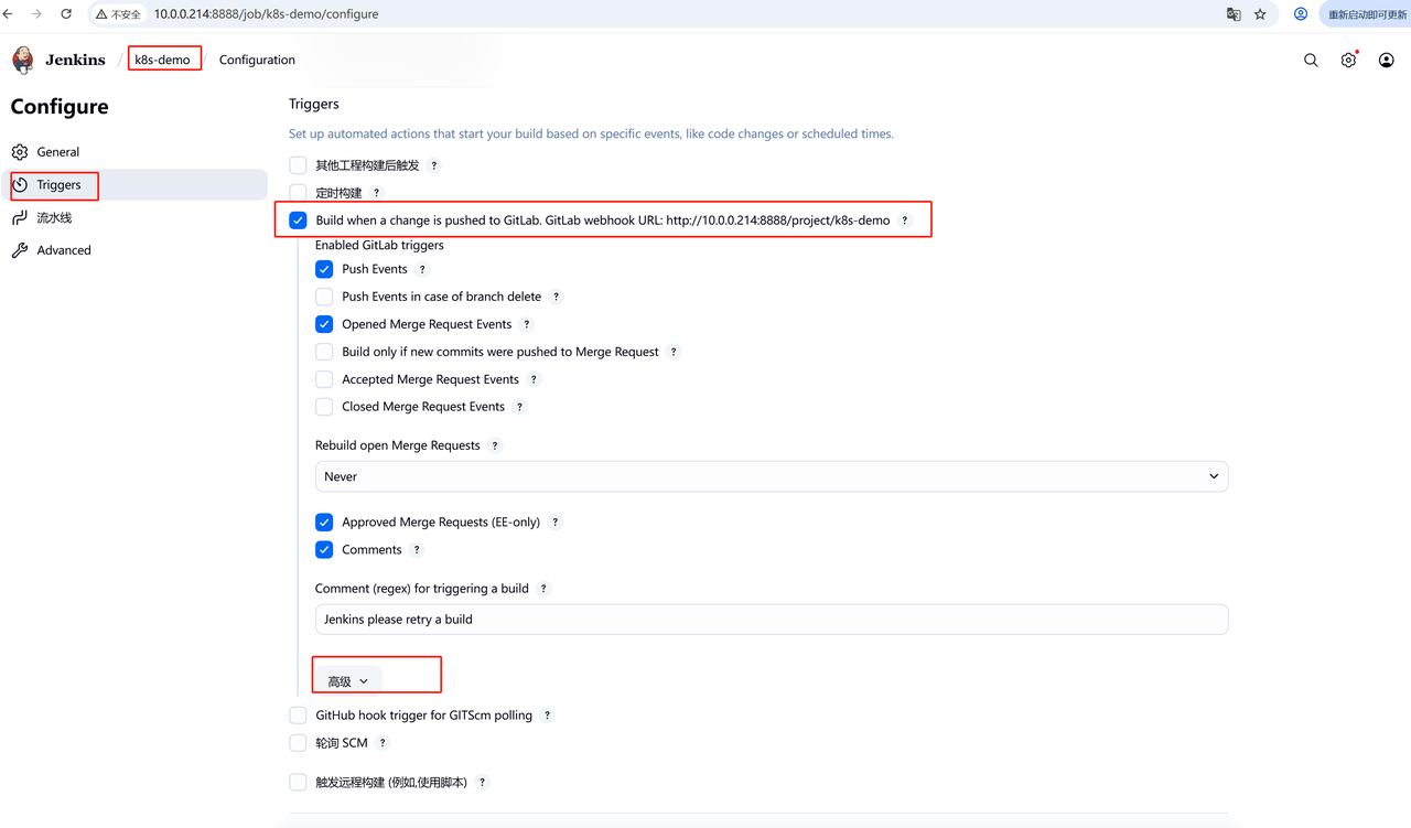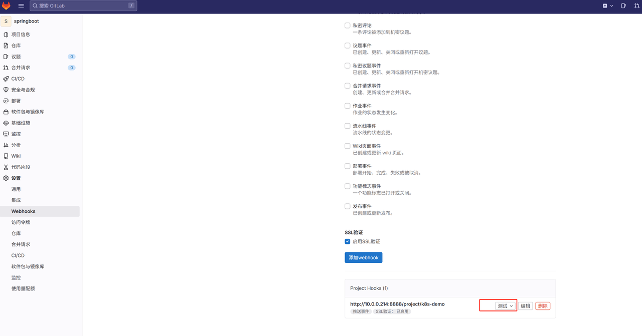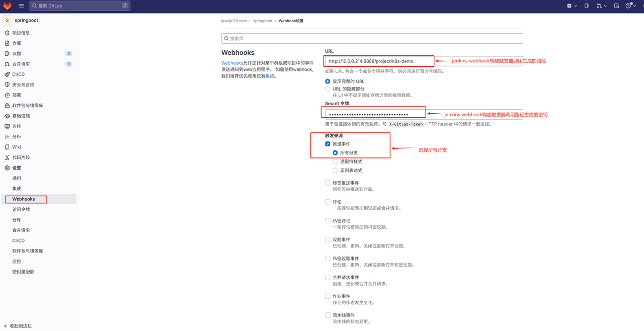 前面的步骤中已经完成了手动执行jenkins执行pipeline任务完成构建部署任务,下面说明如何在代码提交后让gitlab自动触发jenkins执行pipeline任务。