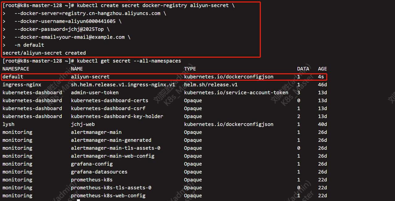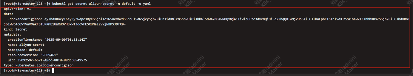 [root@k8s-master-128 ~]# kubectl get secret aliyun-secret -n default -o yaml