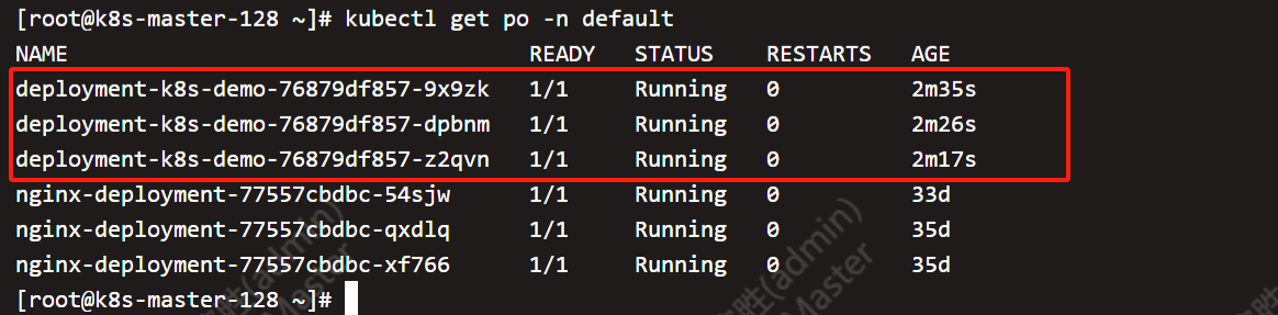 [root@k8s-master-128 ~]# kubectl get pods -n default