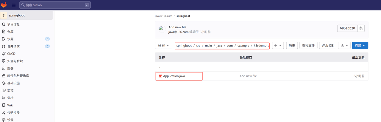 创建 Java 源码文件(src/main/java/com/example/k8sdemo/Application.java)多级目录下的文件
