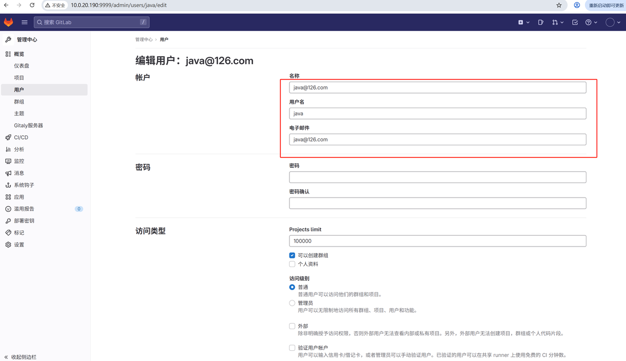 以下直接以gitee测试,gitlab也是一样的步骤和操作。