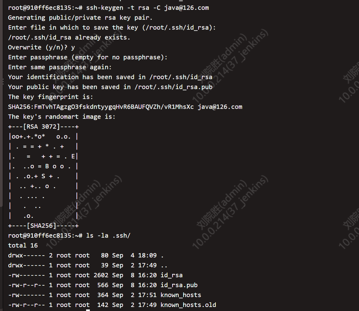 root@910ff6ec8135:~# ssh-keygen -t rsa -C java@126.com