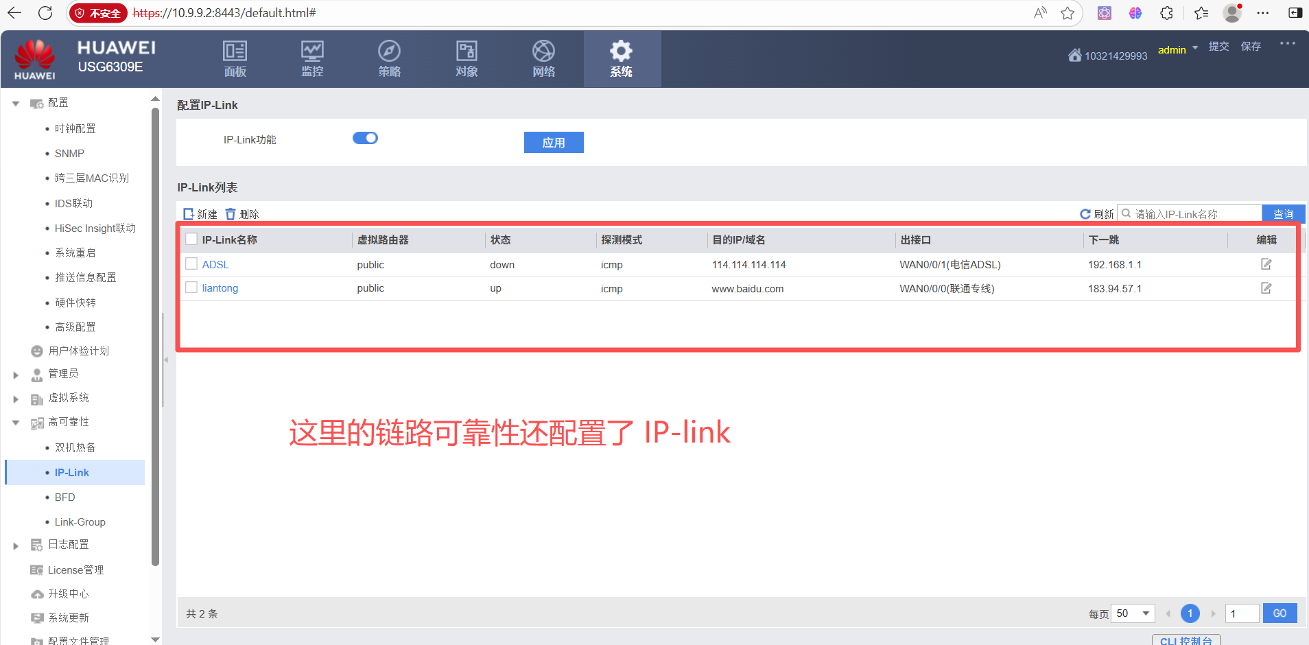 如果企业是多出口的线路,最好是做一个链路的可靠性检测的配置,是选择 BFD 还是选择 ip-link 那就根据公司的实际情况选择