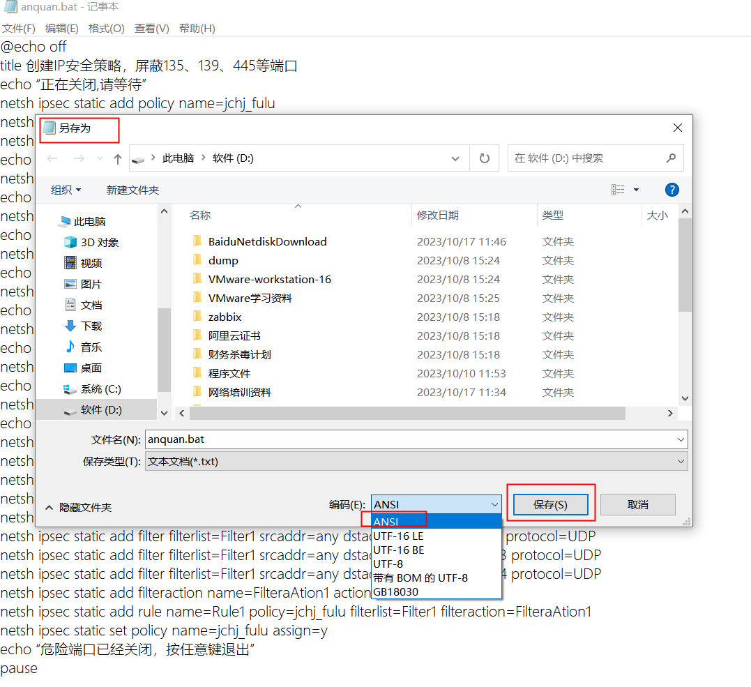 4、另存为窗口,编码选择【ANSI】,然后点击【保存】即可;