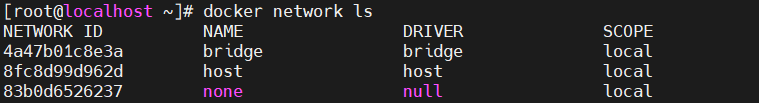 [root@localhost ~]# docker inspect bridge (可查看默认bridge网络)
