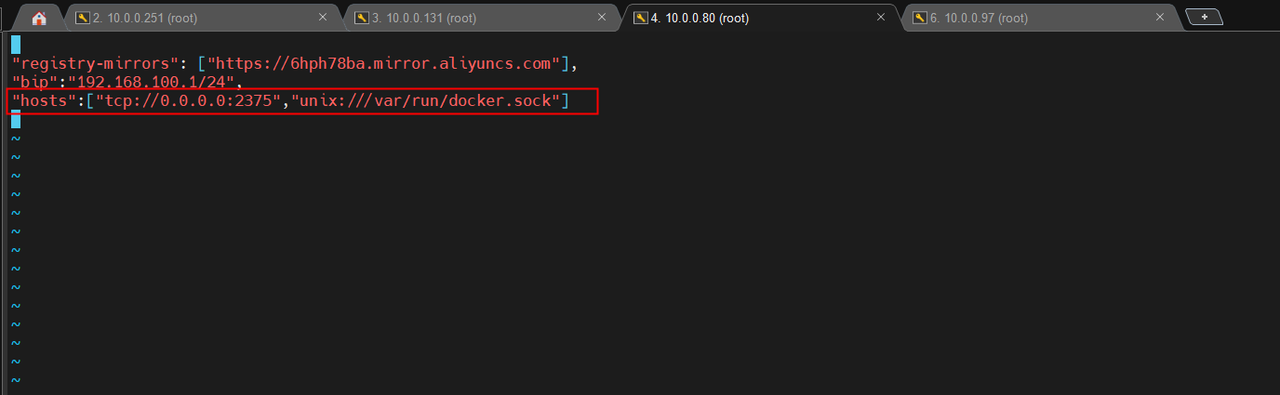 “hosts”:[“tcp://0.0.0.0:2375″,”unix:///var/run/docker.sock”]
