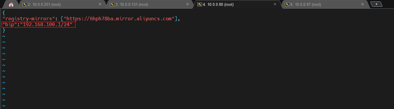 “bip”:”192.168.100.1/24″, bip即bridge ip 之意,用于指定docker0桥自身的IP地址,其它选项可通过此地址计算得出